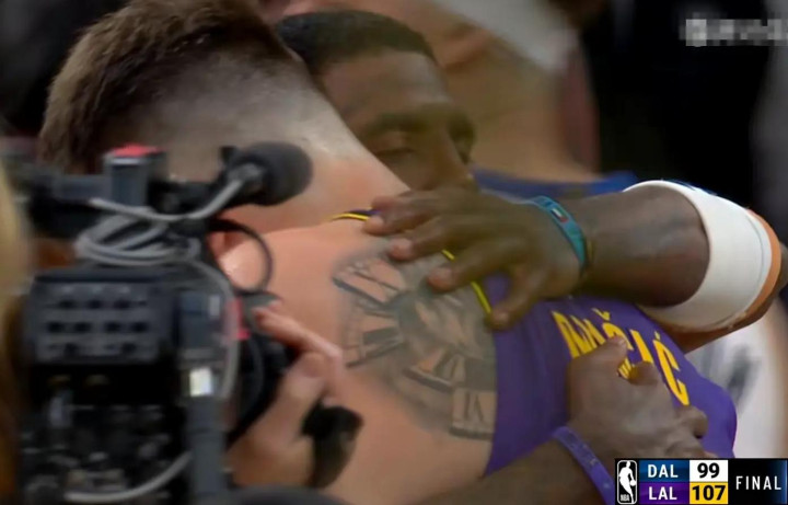 东契奇和欧文在场上谈笑风生,像是旧友重逢。